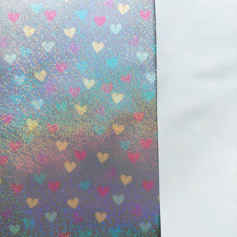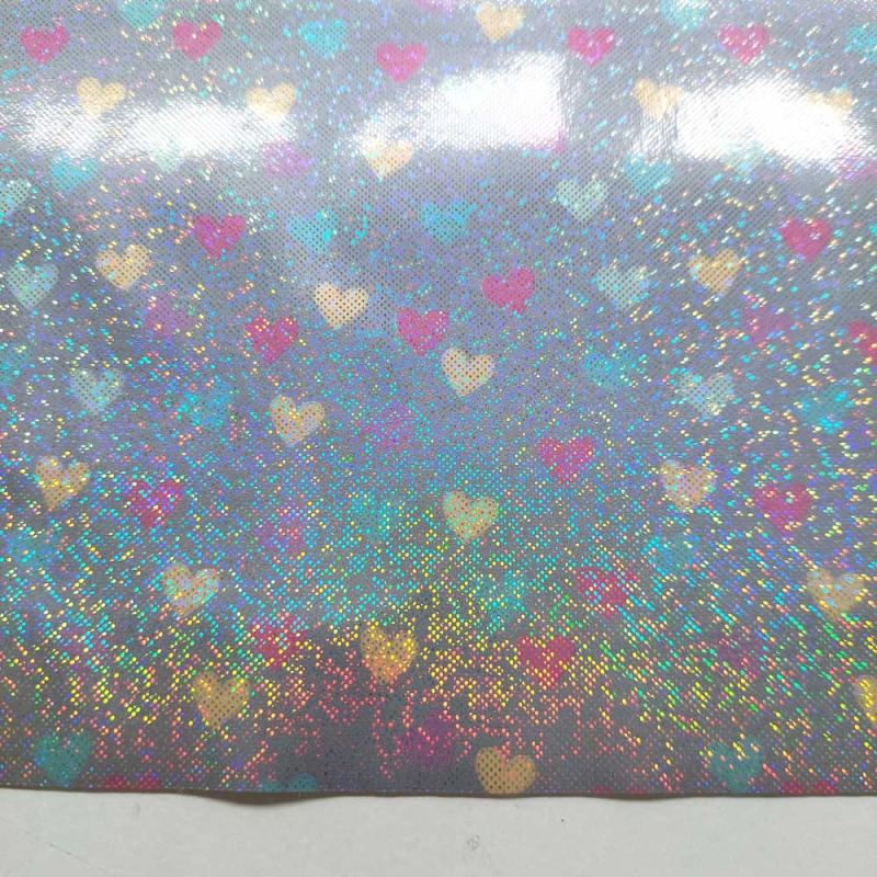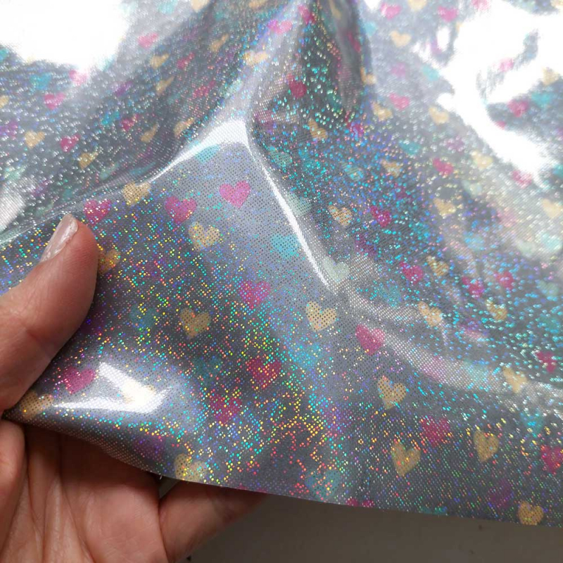 Regenmantelstoff Foliendruck Herzen Regenbogen-Glitzer, grau