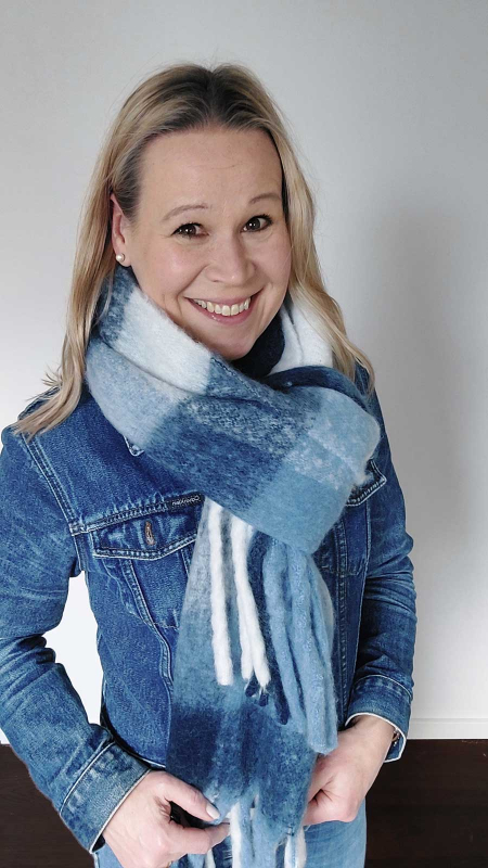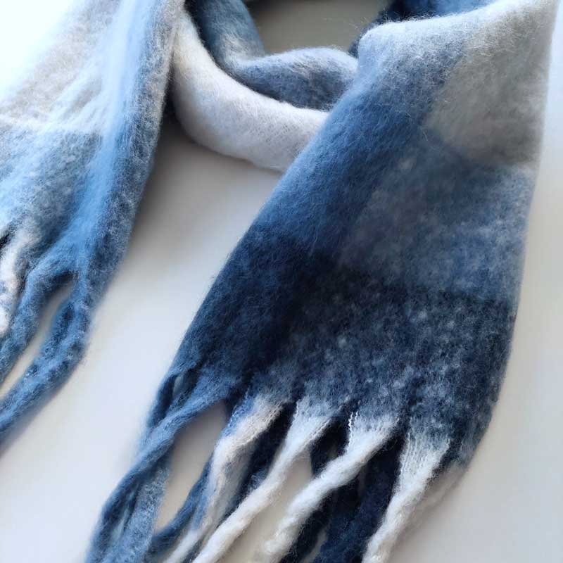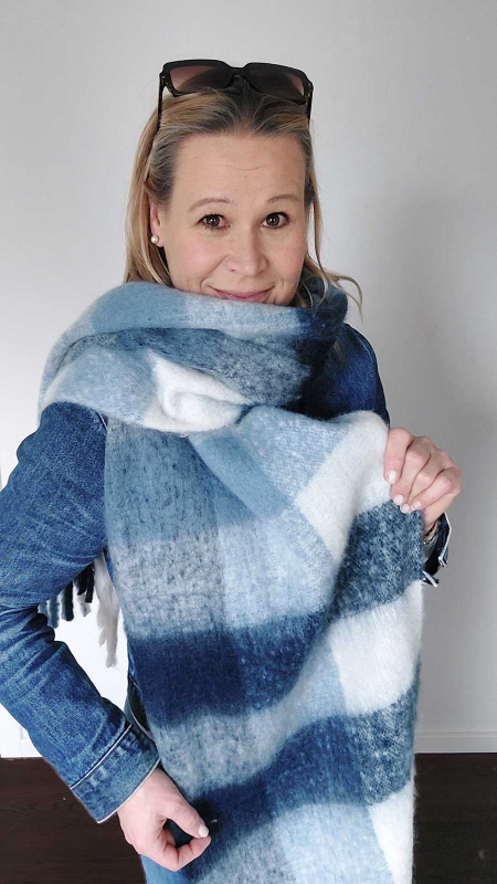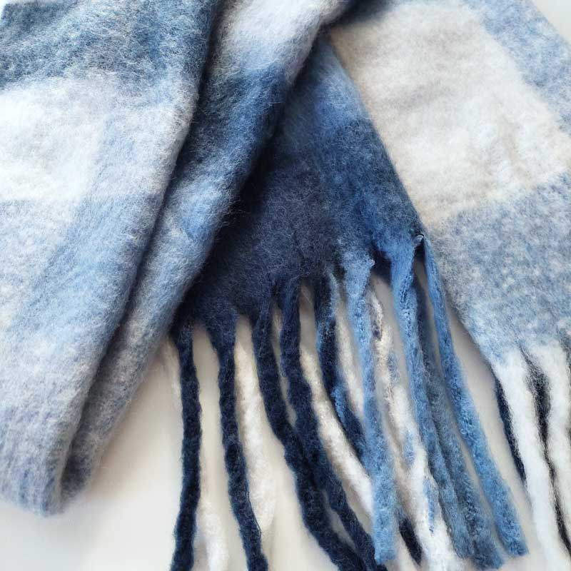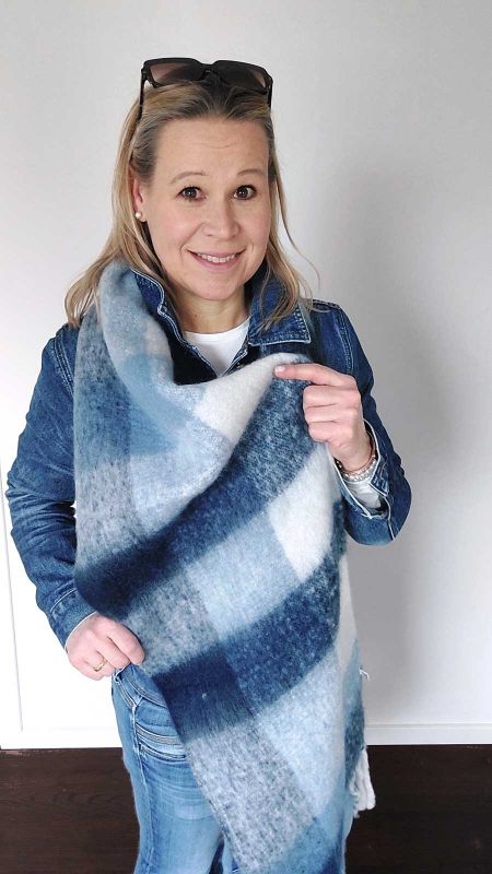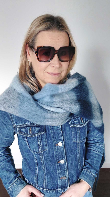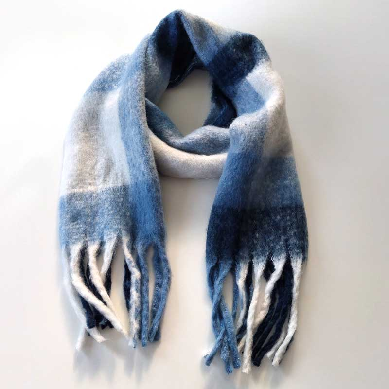 In Blautönen eine zeitlose, edle und neutrale Farbkombination, die sich vielseitig stylen lässt. Ob zur Jeansjacke, Trenchmantel oder einem Blazer, dieser Schal wird Ihnen viel Freude bereiten.