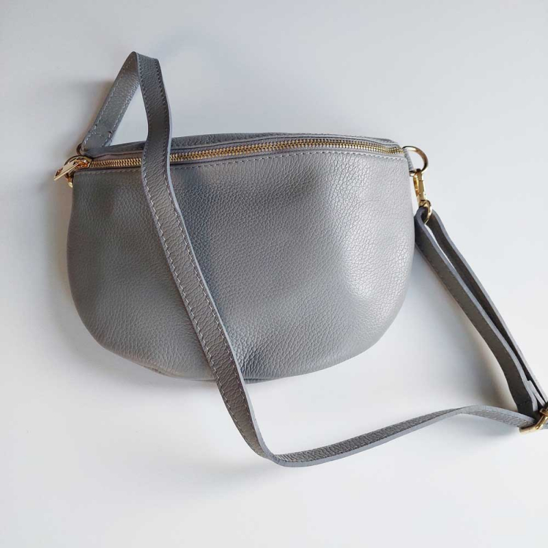 Setzen Sie auf Qualität, Stil und Tradition – entscheiden Sie sich für unsere graue Bauchtasche aus Echtleder, Made in Italy.