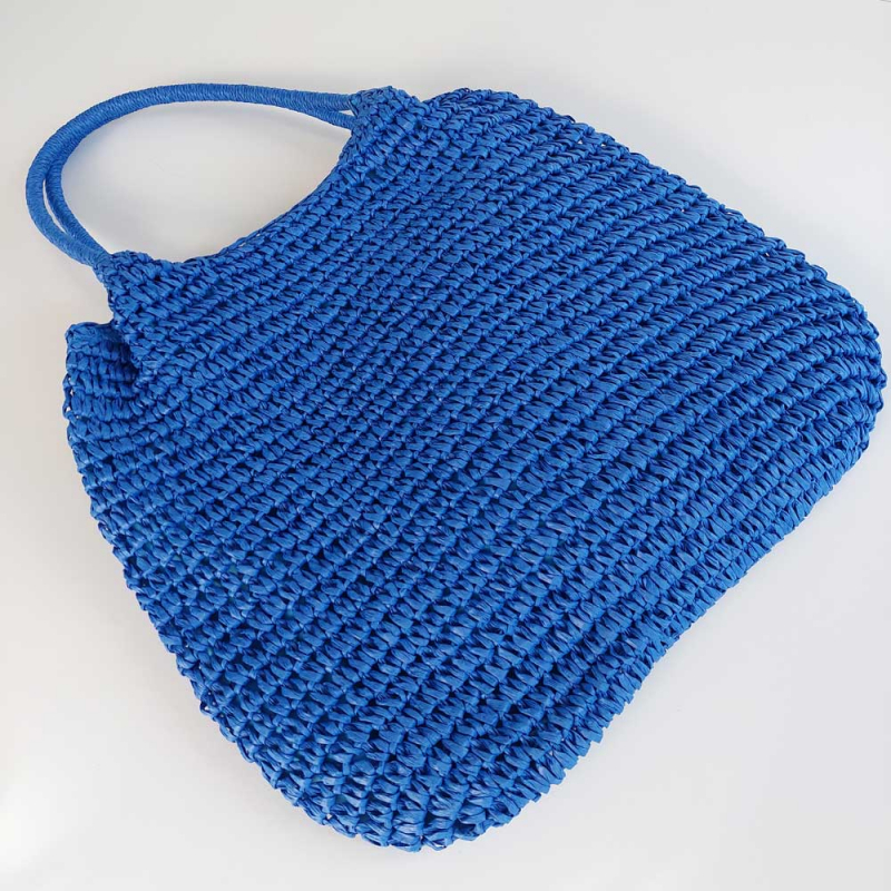Diese stilvolle Umhängetasche aus 100 % Papier überzeugt mit ihrer modernen, geflochtenen Optik und dem modernen Kobaltblau – perfekt für sonnige Tage und entspannte Looks. Das leichte Material sorgt für angenehmen Tragekomfort, während die stabile Verarbeitung Form und Halt bietet.