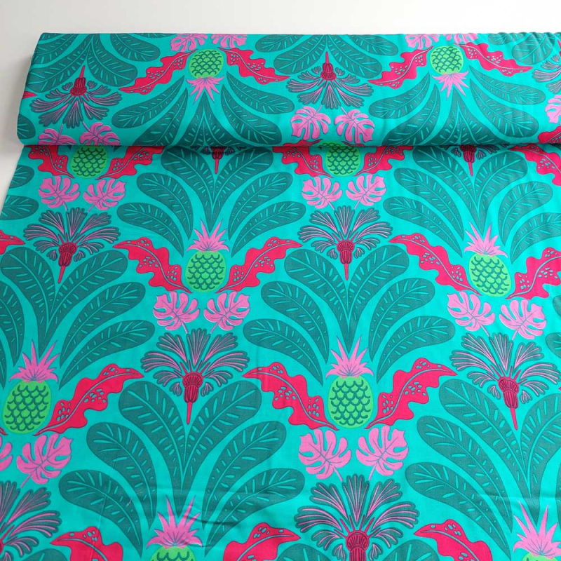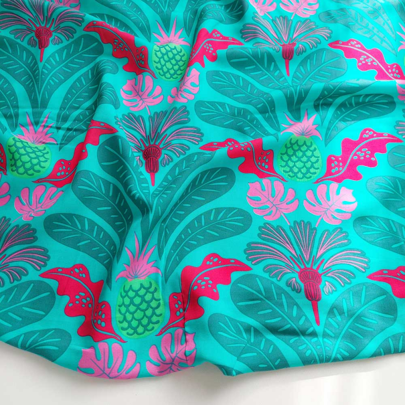 Verleihen Sie Ihren Nähprojekten eine sommerliche Note! Dieser hochwertige Viskose Stoff aus 100 % Viskose vereint einen traumhaft weichen Fall mit einem weichen Griff. Das farbintensive Design in Pink, Rot, Mint und Petrol macht den Stoff zum perfekten Begleiter bei warmen Temperaturen.