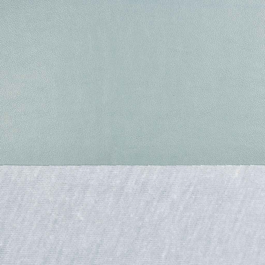 Ein kräftiges, mint metallic Lederimitat. Das uni Kunstleder ist geschmeidig, hat eine leichte Narbung mit einem zarten Perlmuttglanz (metallic Look) und sieht edel aus. Auf der Rückseite hat es einen weißen Geweberücken.