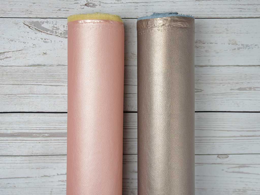Es handelt sich um ein Reststück der Größe 64 cm (L) x 140 cm (B). Ein hellaltrosa metallic Kunstleder mit geprägter Optik. Die Rückseite besteht aus einem hellen Geweberücken aus Baumwolle. Das Lederimitat hat einen weichen Griff und wirkt dadurch wie Echtleder.