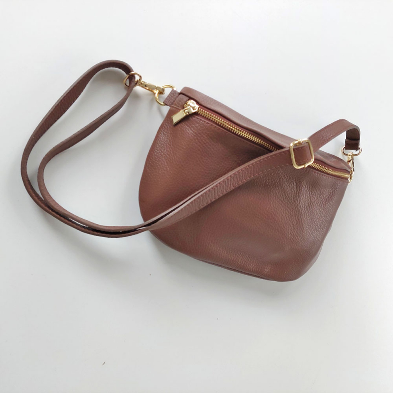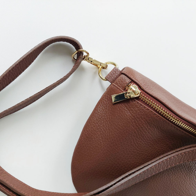 Setzen Sie auf Qualität, Stil und Tradition – entscheiden Sie sich für unsere schokobraune Bauchtasche aus Echtleder, Made in Italy.