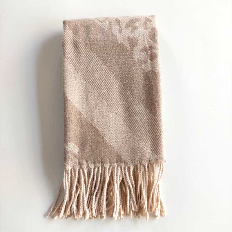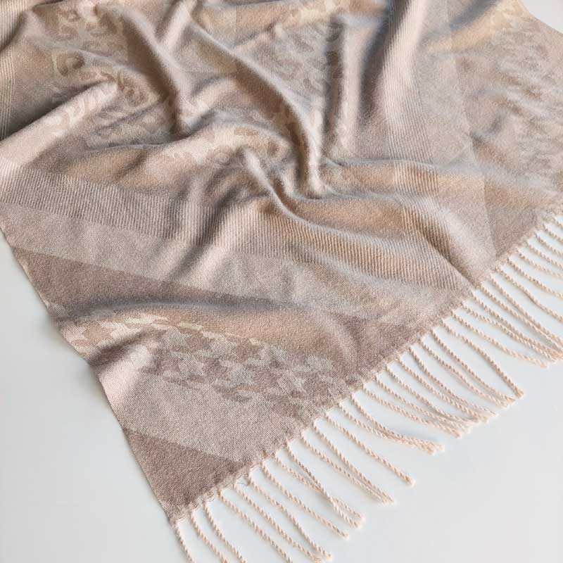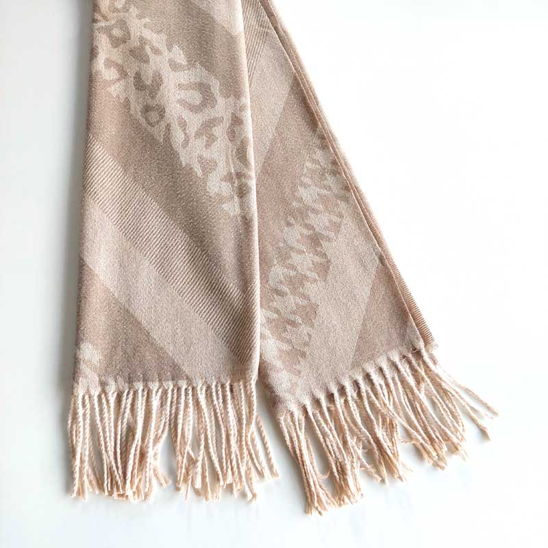 Schal Halstuch Leoparden Hahnentritt Fischgrät Muster Fransen, beige natur