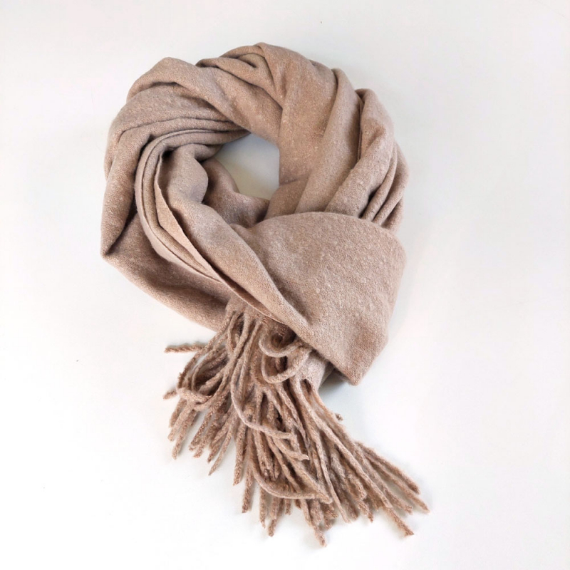 Ein flauschig weicher Schal in helltaupe. Der Schal hat einen weichen dicken Griff und ist sehr angenehm auf der Haut.