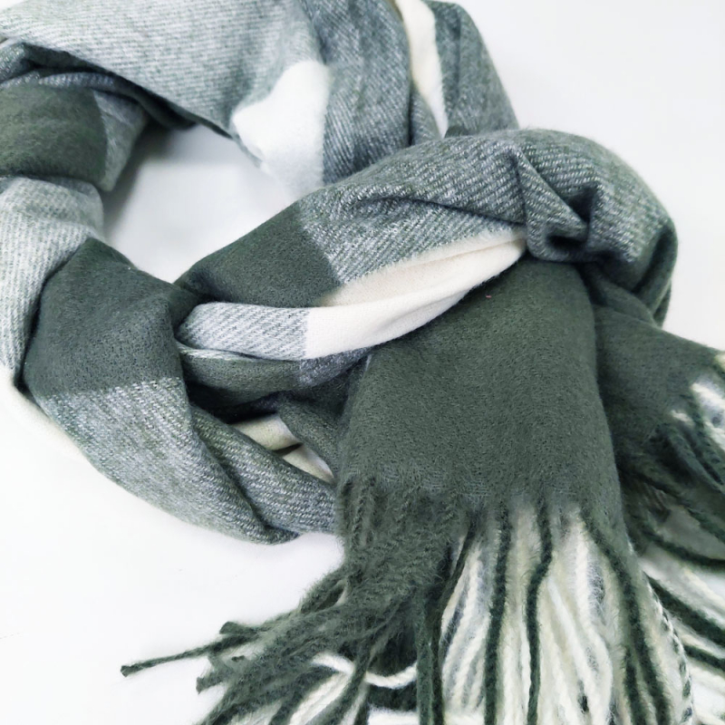 Stylischer Schal mit klassischem Karomuster in Armygrün & Cremeweiß – Weich & Flauschig für Ihren Herbstlook
