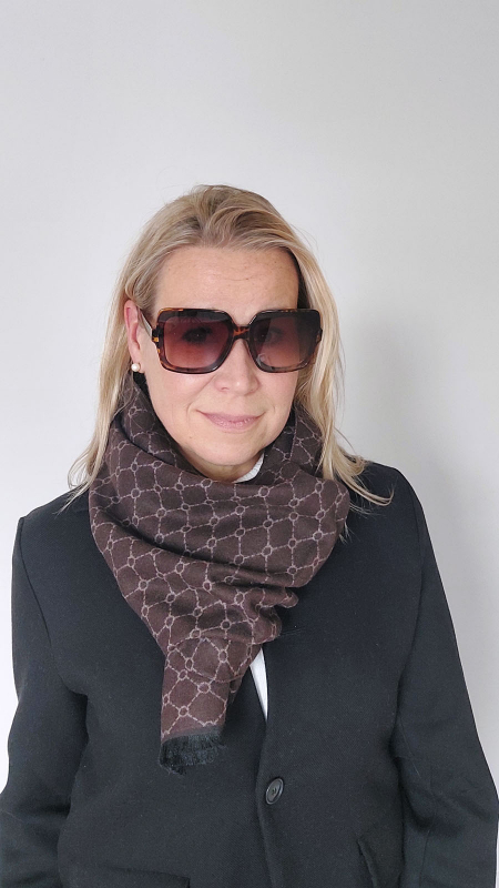 Entdecken Sie die perfekte Kombination aus Eleganz, Stil und Wohlgefühl: Unser eleganter Schal aus 100 % hochwertiger Viskose überzeugt mit seiner weichen Haptik und einem klassisch-grafischen Design in der Trendfarbe Dunkelbraun mit klassischem Beige.