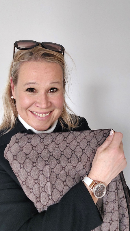 Das feine Gitternetzmuster verleiht diesem Accessoire eine dezente Raffinesse – modern, aber niemals aufdringlich. Ob im Büro, beim Stadtbummel oder zu festlichen Anlässen: Dieser Schal rundet jedes Outfit stilvoll ab und verleiht Ihnen eine zeitlose Eleganz.