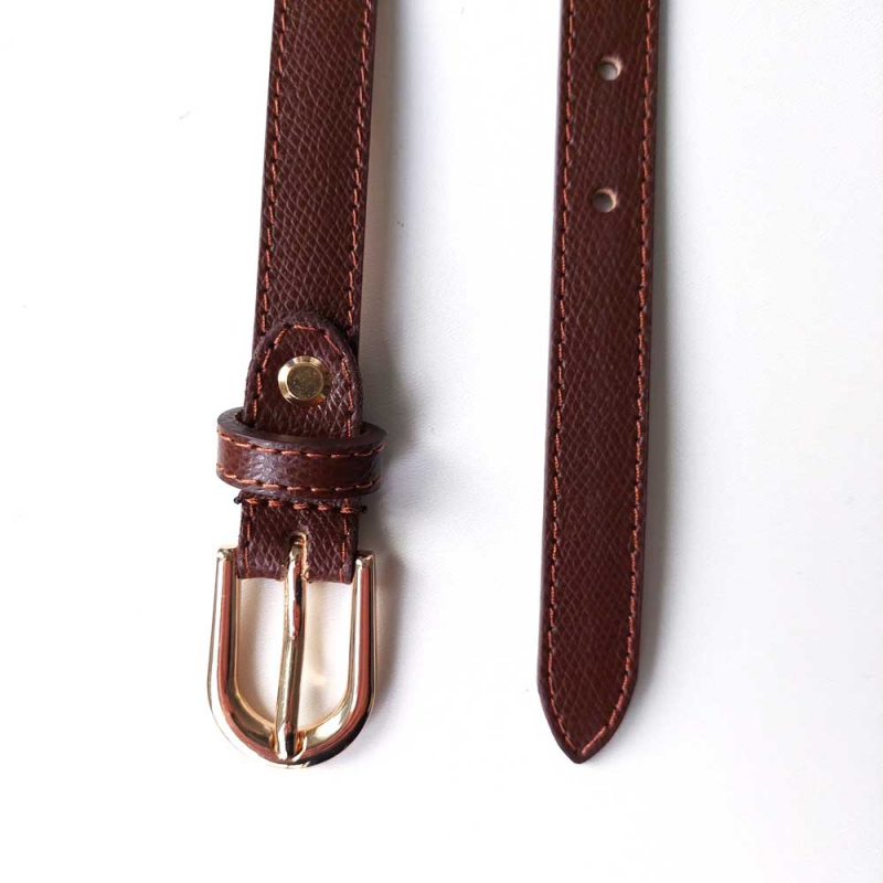 Ledergürtel schmal uni Gr. 90 (109 cm) gold Schnalle, braun