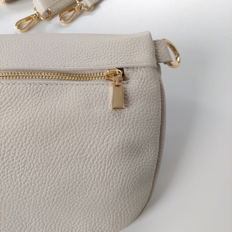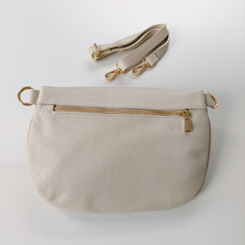 Setzen Sie auf Qualität, Stil und Tradition – entscheiden Sie sich für unsere ecrue Bauchtasche aus Echtleder, Made in Italy.