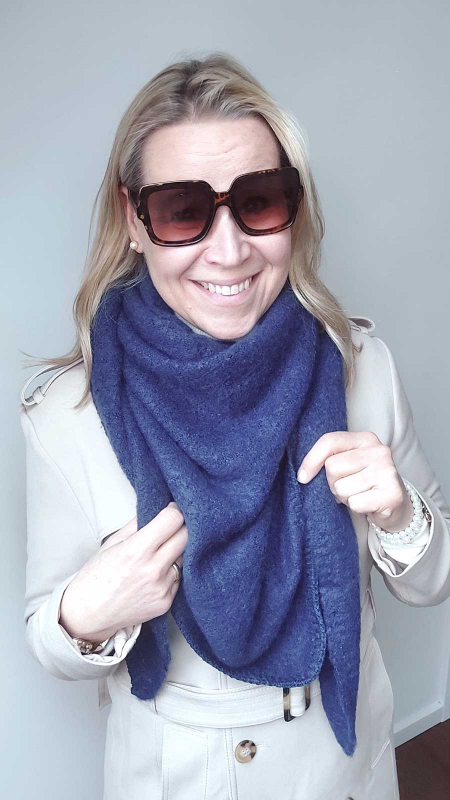 Ein flauschig weicher dunkelblauer (marineblau) Schal als Dreieck. Der Schal hat einen super weichen dicken Griff und ist sehr angenehm auf der Haut. Die Ränder sind mit Handstich verziert.