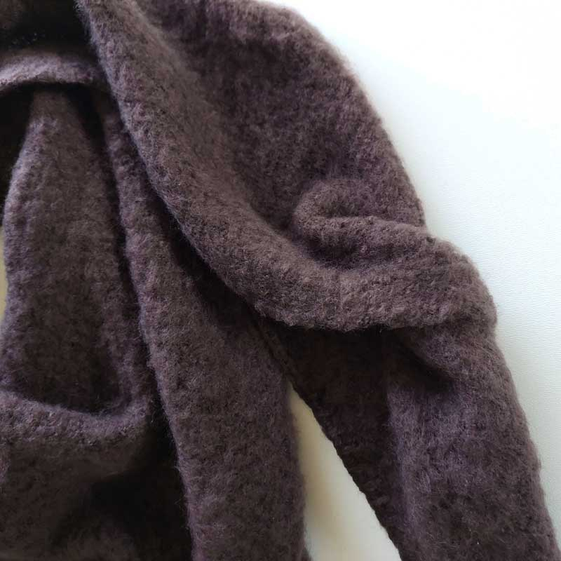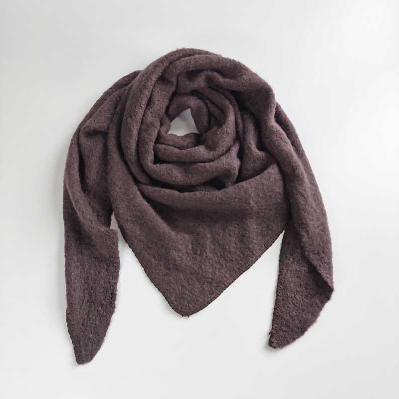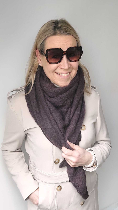 Ein flauschig weicher dunkelbrauner Schal als Dreieck. Der Schal hat einen super weichen dicken Griff und ist sehr angenehm auf der Haut. Die Ränder sind mit Handstich verziert.