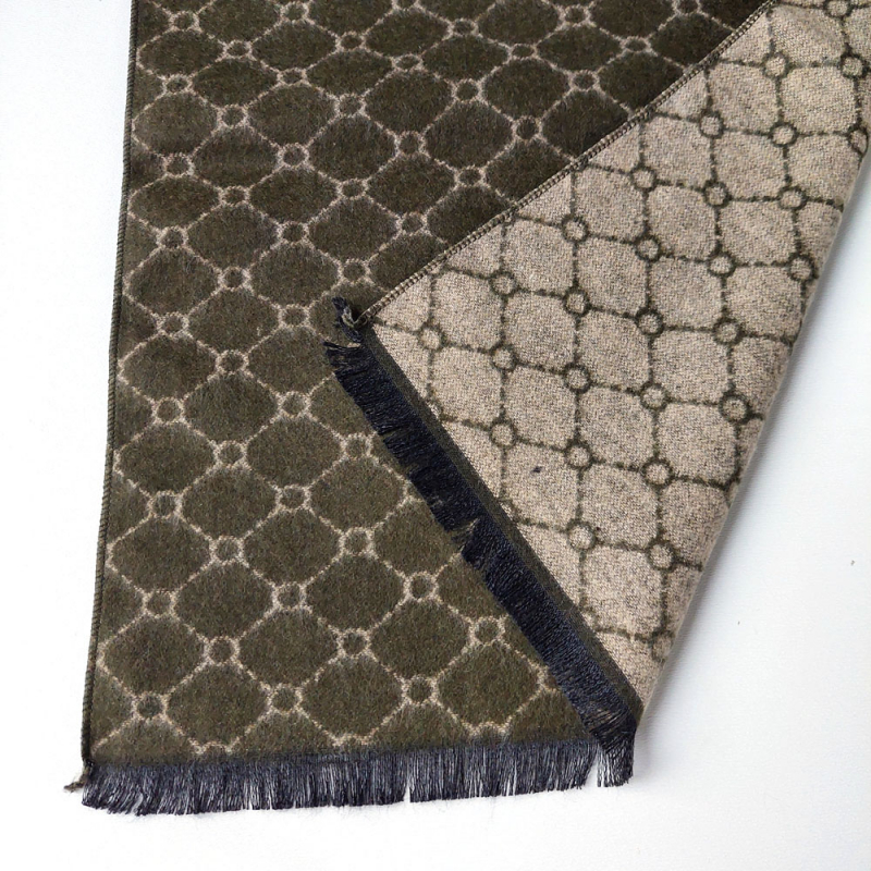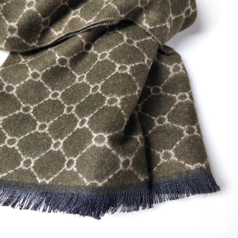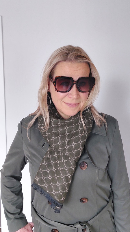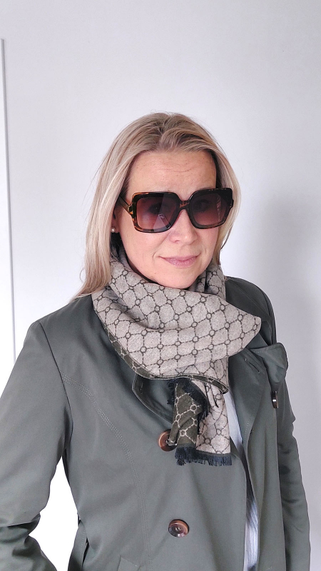 Entdecken Sie die perfekte Kombination aus Eleganz, Stil und Wohlgefühl: Unser eleganter Schal aus 100 % hochwertiger Viskose überzeugt mit seiner weichen Haptik und einem klassisch-grafischen Design in edlem Olvigrün mit klassischem Beige.