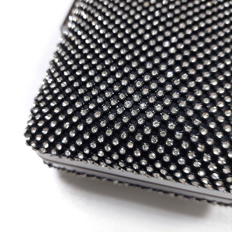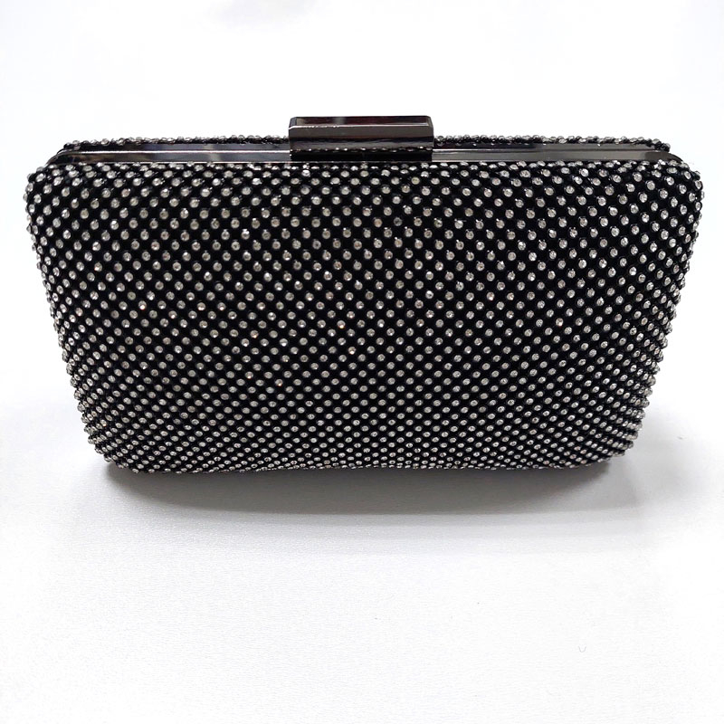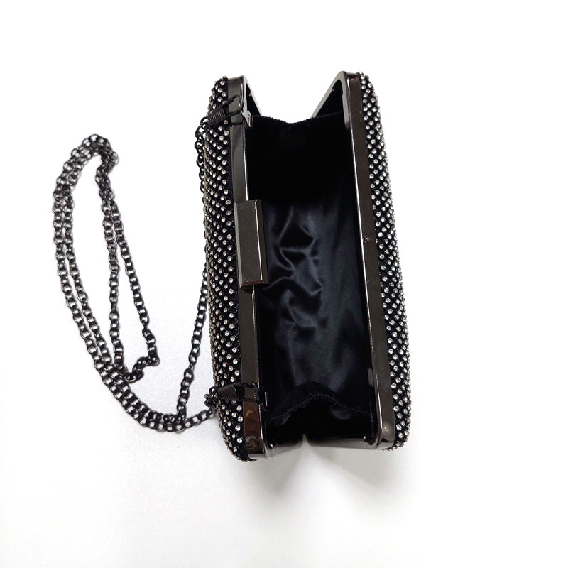 Diese klassische legante Tasche mit funkelnden Strasssteinen verleiht Ihrem Outfit sofort einen Hauch Glamour. Die gunmetal Metallkette kann zwar mit Hilfe von kleinen Karabinern ausgehakt werden, ist aber nicht notwendig. Denn die Metallkette lässt sich in die Tasche legen und der Verschluß schließt trotzdem korrekt. So können Sie je nach Bedarf schnell und ohne Aufwand zwischen Clutch und Umhängetasche wechseln. Innen hat die Tasche ein schwarzes Futter.