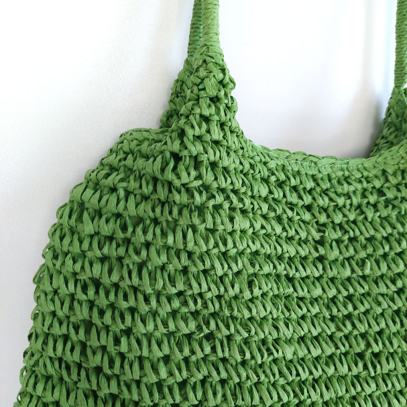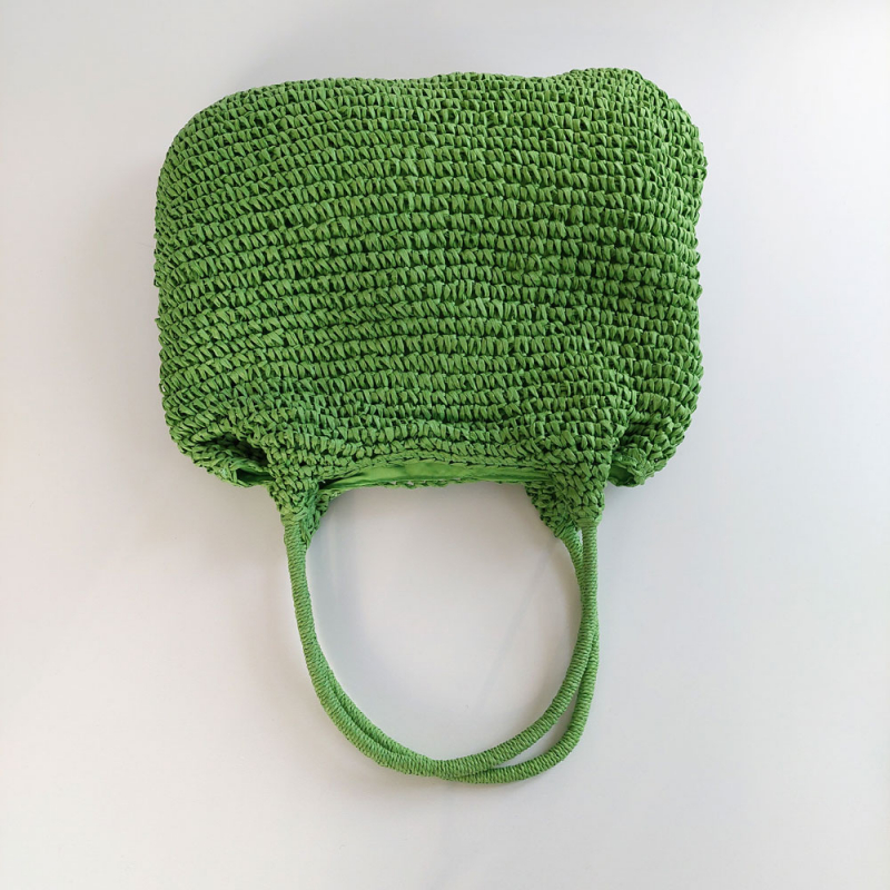 Diese stilvolle Umhängetasche aus 100 % Papier überzeugt mit ihrer modernen, geflochtenen Optik und dem frischen Grünton – perfekt für sonnige Tage und entspannte Looks. Das leichte Material sorgt für angenehmen Tragekomfort, während die stabile Verarbeitung Form und Halt bietet.