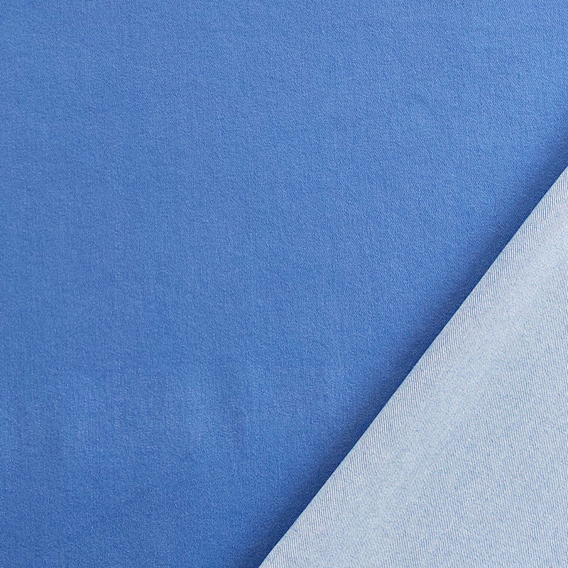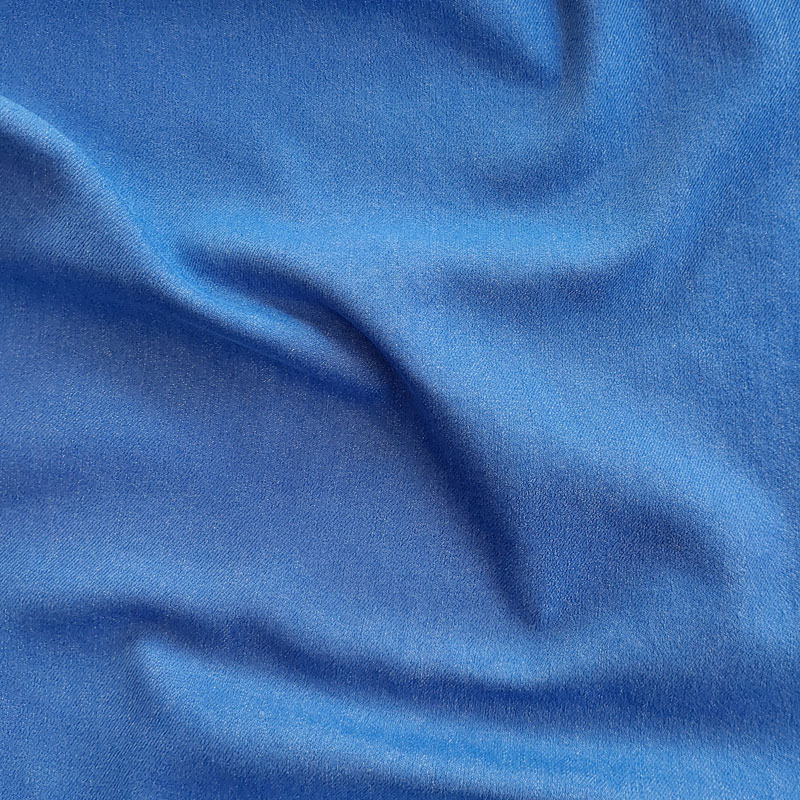 Ein robuster Denim Stoff (Jeansstoff) mit Stretch, der farblich eingefärbt wurde, der sogenannte "colored denim". In Köperbindung gewebt, zeichnet sich der Denim durch eine feine diagonale Rippenstruktur aus. Aufgrund des Elasthananteils ist der Denim leicht querelastisch und bietet guten Tragekomfort.