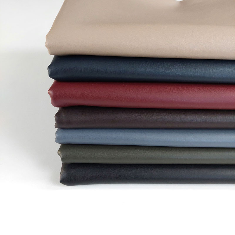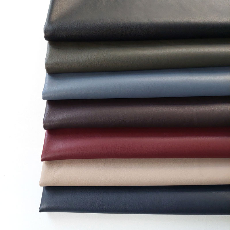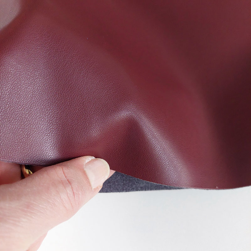 Ein weinrotes Lederimitat mit angerautem, grauen Geweberücken, der sich anfühlt wie Wildleder. Das Lederimitat ist gut elastisch und bietet somit guten Tragekomfort. Das Kunstleder hat einen butterweichen Griff, ist geschmeidig mit einer glatten Oberfläche. Die Rückseite ist grau.
