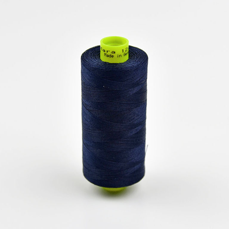 Ein dunkelblaues Allesnäher Nähgarn von Gütermann als 1000 m Rolle. Das MARA Nähgarn hat eine hohe Reiß- und Scheuerfestigkeit und ist geeignet für jede Art von Naht, sowohl mit der Nähmaschine, als auch von Hand.