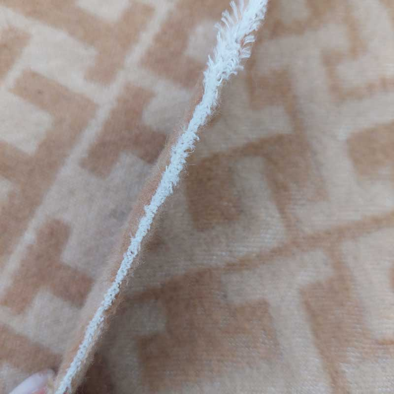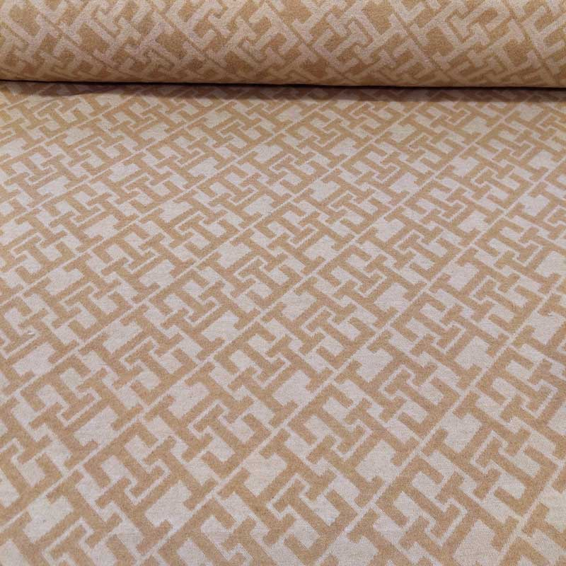 Ein hochwertiger, italienischer camel-brauner Wollstoff mit beigen Buchstaben. Es handelt sich um einen Designerstoff als Deadstock Stoff. D.h. Sie kaufen hier einen exclusiven Stoff in limitierter Auflage. So hat Ihr selbstgenähtes Teil einen einzigartigen Charakter. Der Stoff ist dreilagig und entsprechend wärmend und perfekt für Jacken und Mantel.