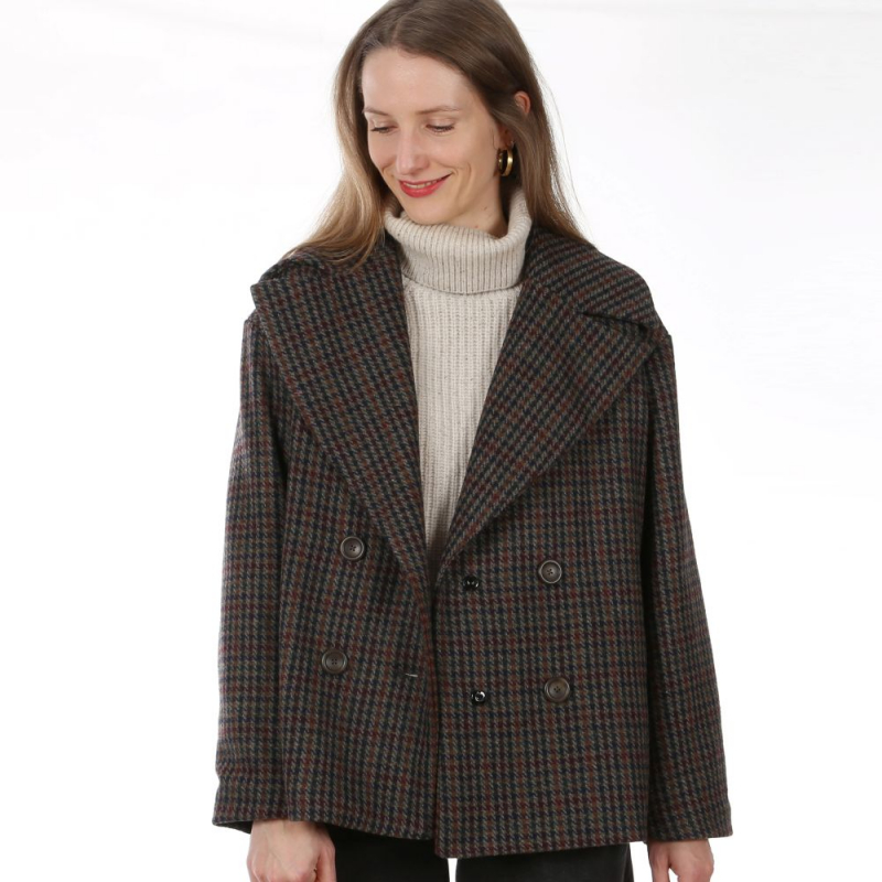 Papierschnittmuster Damen Kurzmantel Frau Laura - Schnittmusterbogen auf Papier mit farbig gedruckter Fotonähanleitung.