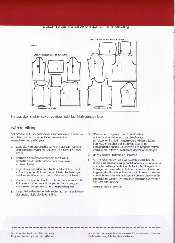 Herstellerinfo (GPSR): Schnittmuster Berlin, Ringbahnstraße 105-107, 12103 Berlin, www.schnittmuster-berlin.de