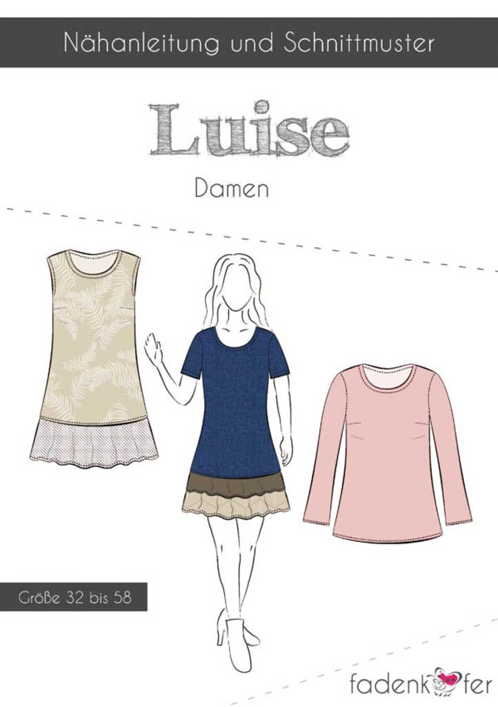 Luise ist ein Basicschnitt, der drei verschiedene Armvarianten enthält und als Kleid, Tunika oder Oberteil genäht werden kann. Wähle zwischen taillierter oder gerader Form. Das Schnittmuster ist für Nähanfänger gut geeignet.