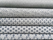 Ein super weicher und leicht dehnbarer Jacquard Jersey in grau melange mit dunkelblauen Steuerrädern. Super schick!