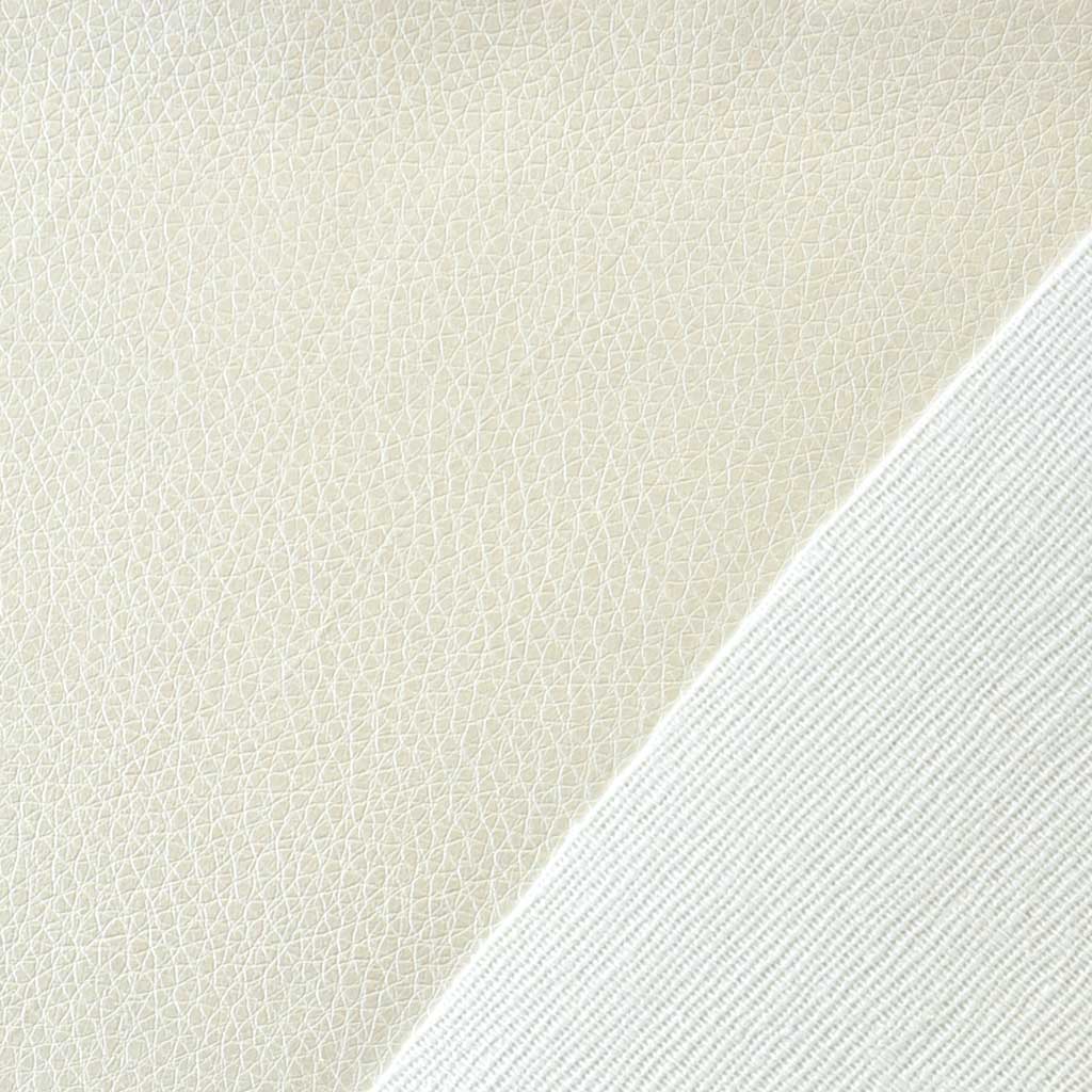 Es handelt sich um ein Reststück der Größe 22 cm (L) x 143 cm (B). Ein cremeweiß metallic Kunstleder mit geprägter Optik. Die Rückseite besteht aus einem hellen Geweberücken aus Baumwolle. Das Lederimitat hat einen weichen Griff und wirkt dadurch wie Echtleder.