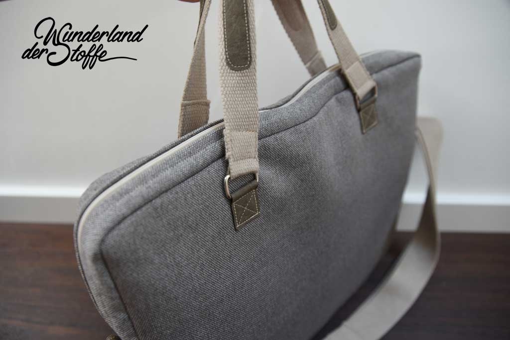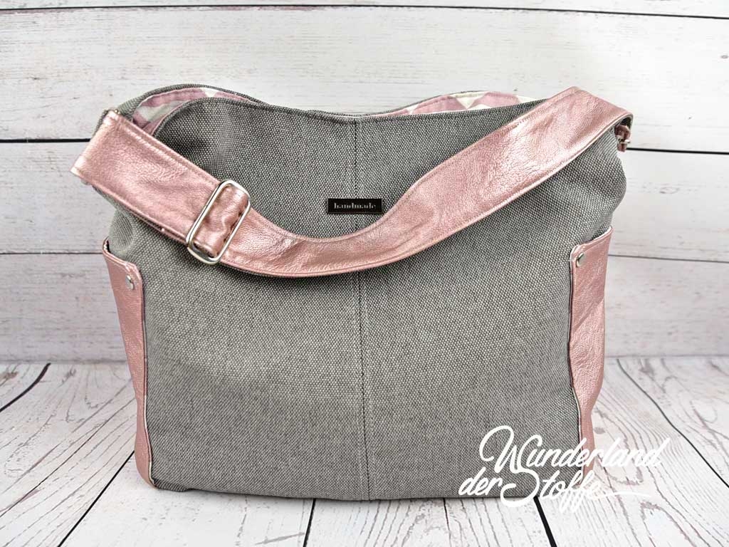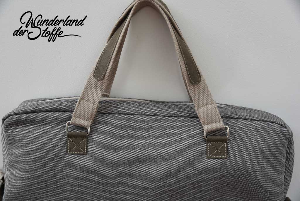 Ein hochwertiger, graubeige melierter (taupe) Taschenstoff mit dem Namen "Rom". Die Webware ist maschinenwaschbar und leicht wasserabweisend. Das Polyester macht den Stoff robust und strapzierfähig. Der Taschenstoff ist fest und hat guten Stand.