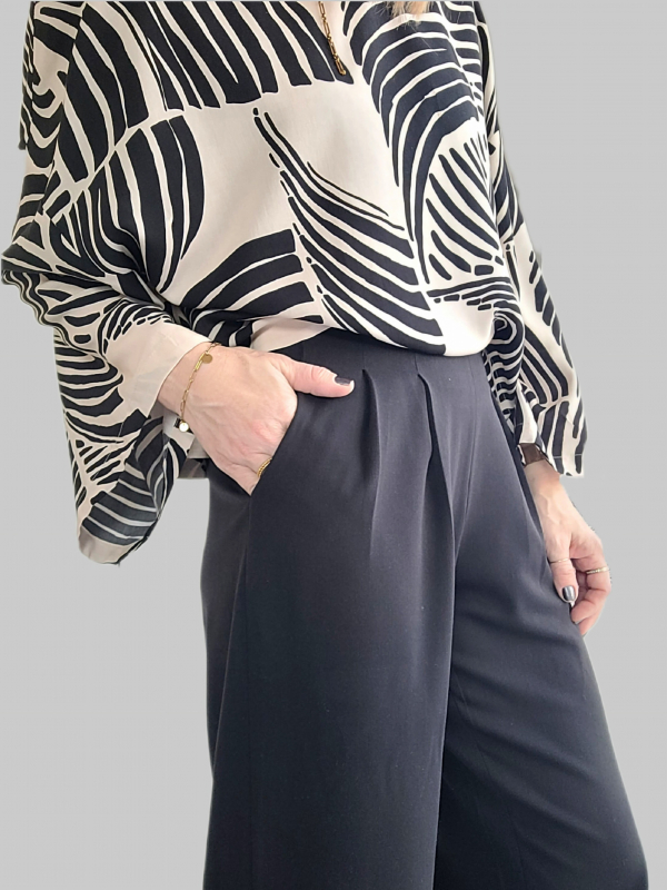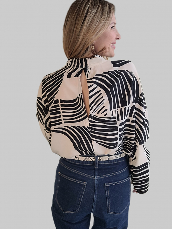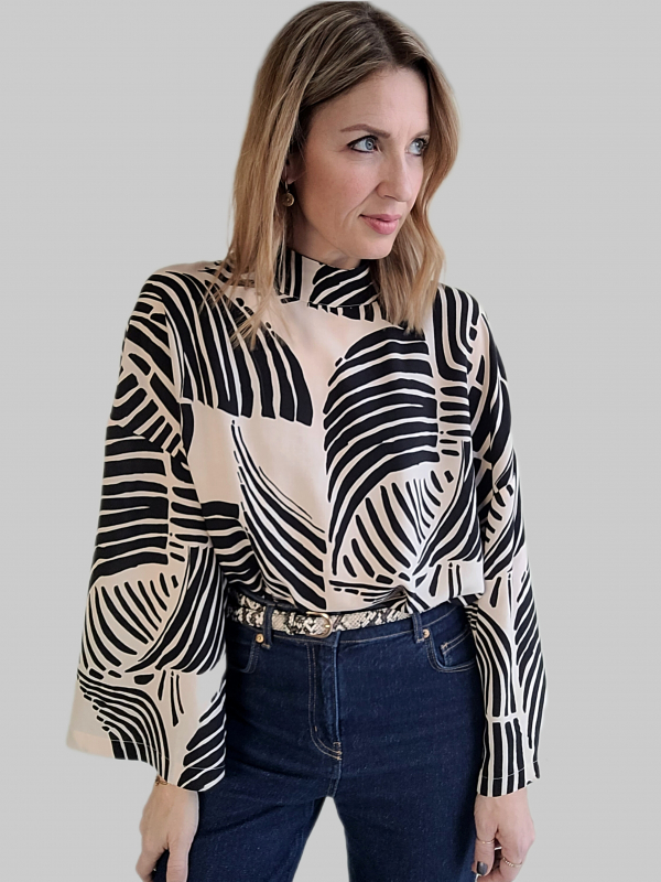 Viskose Stoff Blusenstoff grafisches Muster - cremeweiß schwarz - Made in Italy