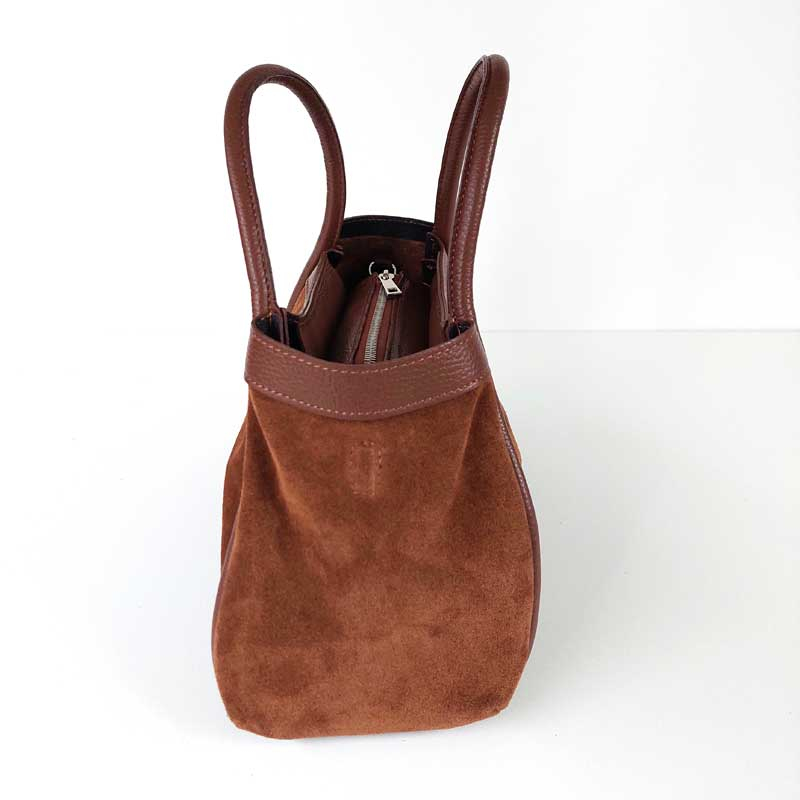 Setzen Sie auf Qualität, Stil und Tradition – entscheiden Sie sich für unsere schicke Handtasche aus echem Wildleder, Made in Italy.