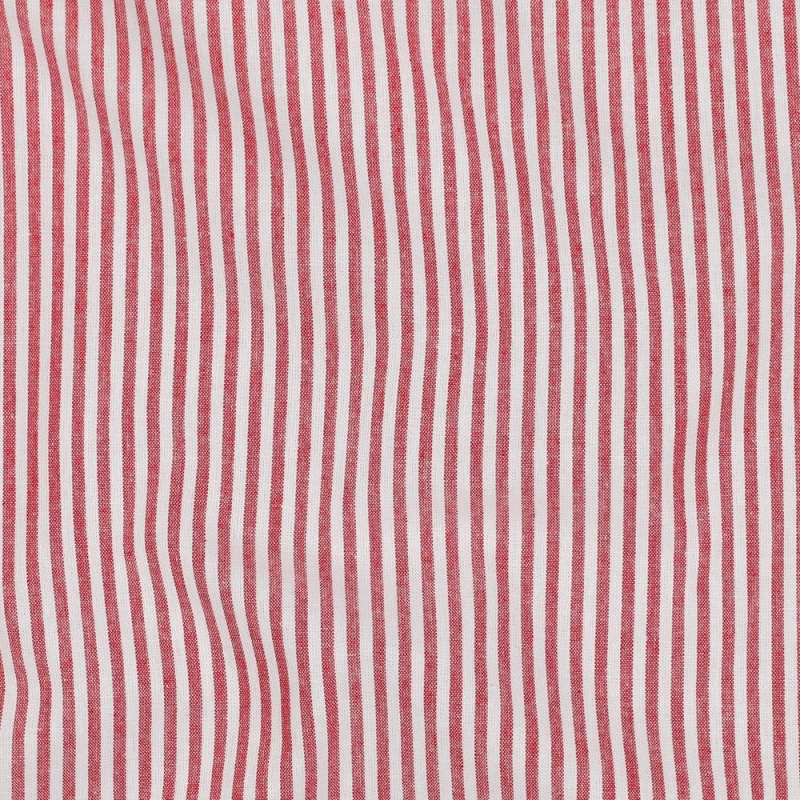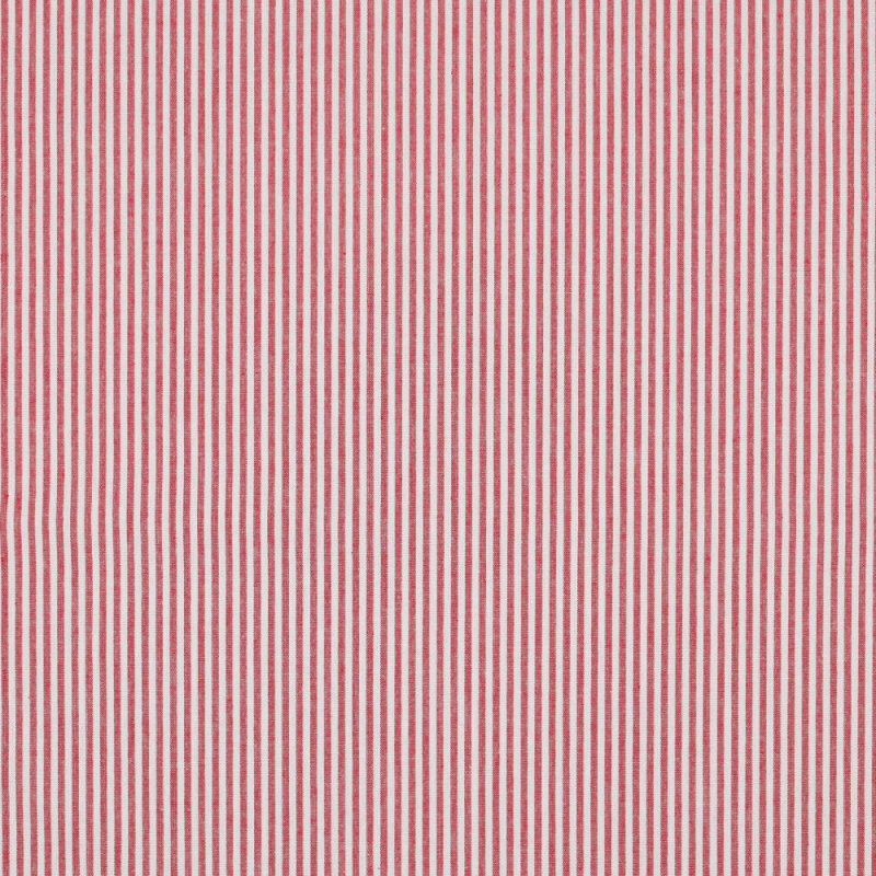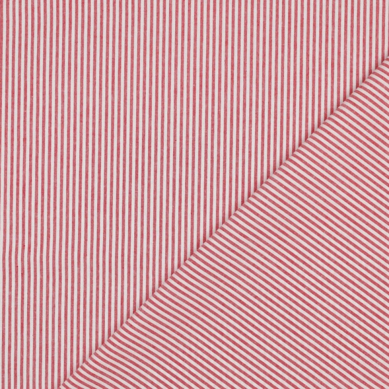 Ein rot-weiß gestreifter Baumwollstoff. Der Stoff ist garngefärbt, d.h. das Garn wurde vor dem Weben eingefärbt. Die roten und weißen Streifen sind gewebt und 3 mm breit. Die Webware hat eine glatte Oberfläche, einen weichen Griff und ist unelastisch. Sie lässt sich auch von Nähanfängern gut vernähen.