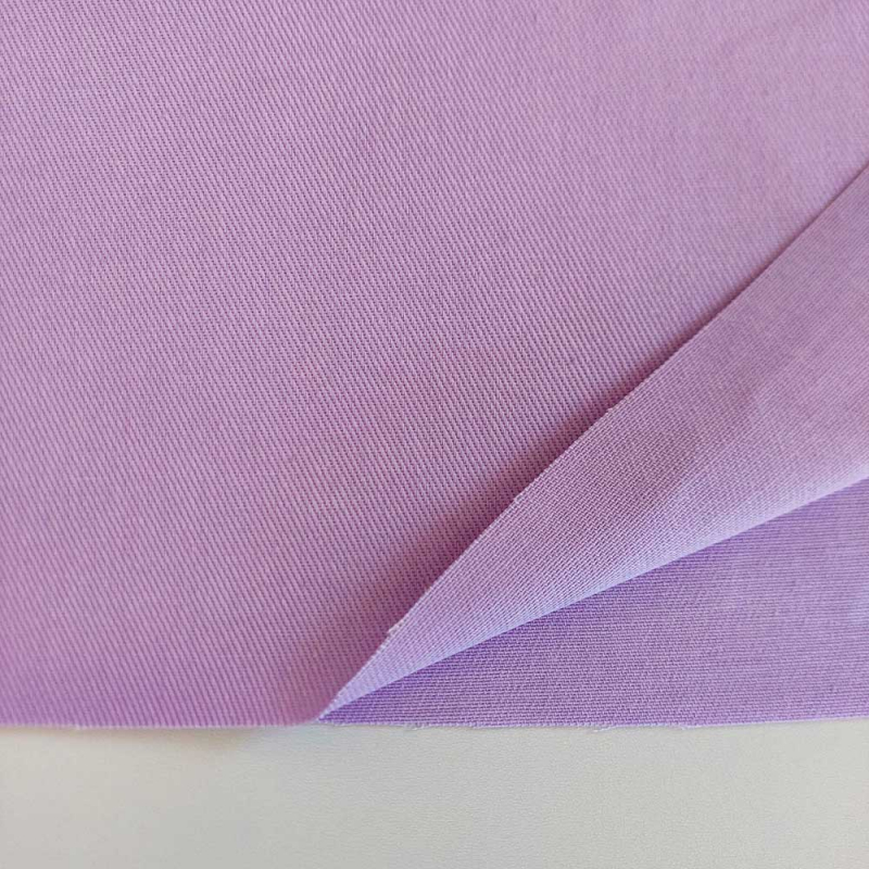 Der Stoff überzeugt durch seine moderne, flieder-farbige Färbung. Dadurch entsteht ein frischer und modischer Look, der sich von klassischem blauem Denim abhebt, aber dennoch die typische Jeansstruktur besitzt. Die dichte Webart sorgt für eine robuste Oberfläche und einen charakteristischen Denim-Griff.