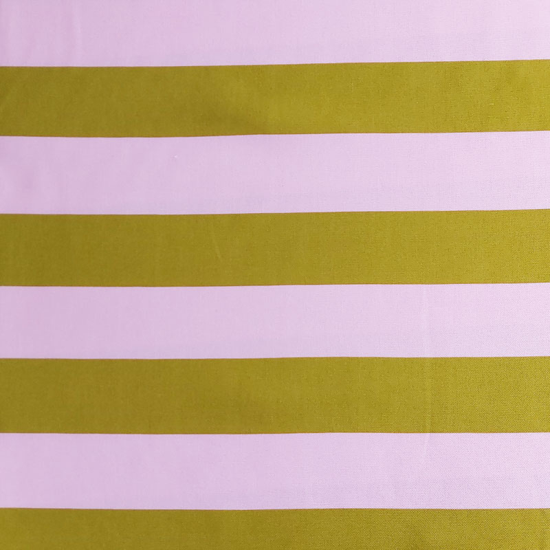 Ein Canvas Stoff bedruckt mit rosa und gelbgrünen Blockstreifen. Die Streifen sind ca. 5 cm breit. Der Baumwollstoff ist robust, unelastisch und lässt sich gut vernähen. Die Stoffrückseite ist nicht bedruckt, d.h. weiß.