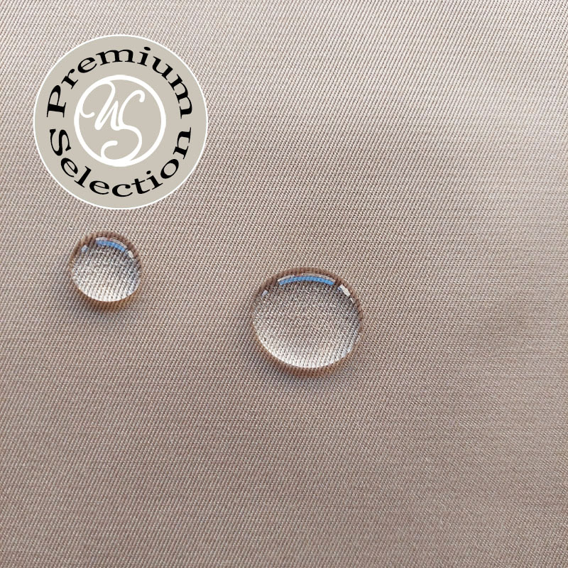 Ein einfarbiger, camel Baumwolltwill Stoff mit einem wasserabweisenden Finish. Wasser perlt einfach am Stoff ab.