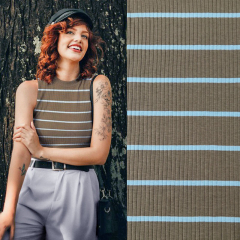 Rippenjersey ist ein in Rippen gestrickter Jerseystoff. Dadurch ist der Stoff schön elastisch und bietet einen guten Tragekomfort. Rippenjersey ist momentan super trendy und besonders beliebt für Bekleidung und Mützen.