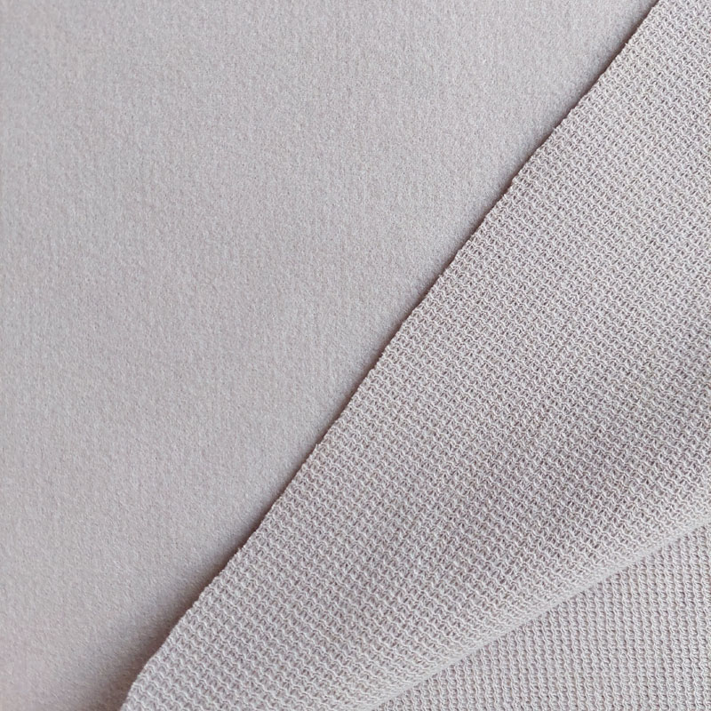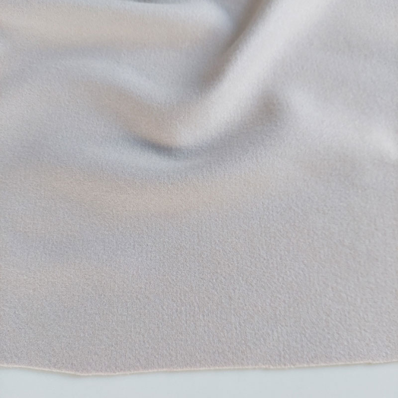 Ein eleganter, helltaupe Jackenstoff mit einer feinen, leicht flauschigen Oberseite, die sehr klassisch und elegant aussieht. Die Stoffrückseite kann je nach Geschmack ebenfalls als rechte Seite verwendet werden.