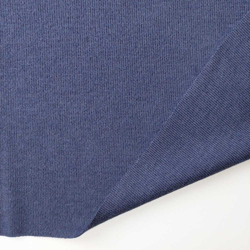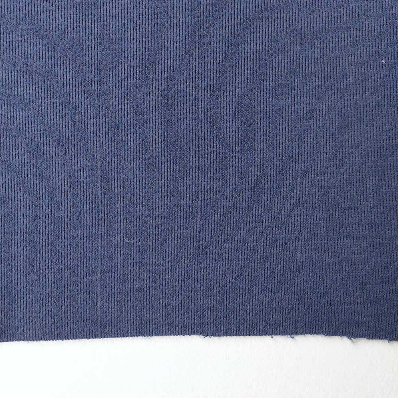 Ein dunkelblauer, glatter Strickstoff. Der Strickstoff ist dicht mit einem weichen Griff, leicht elastisch und und fällt weich. Der Tragekomfort ist enorm gut.