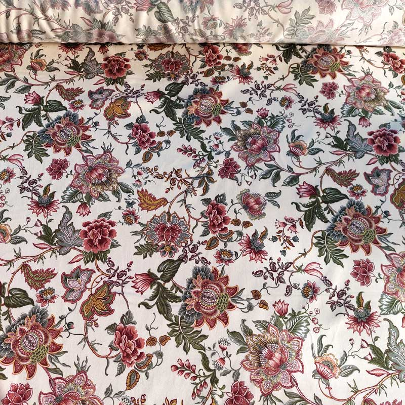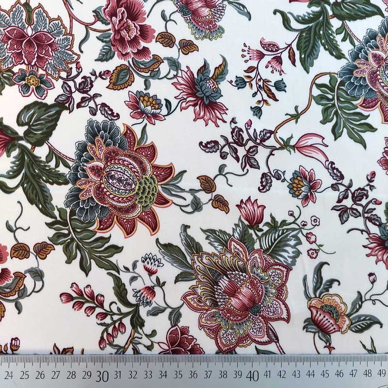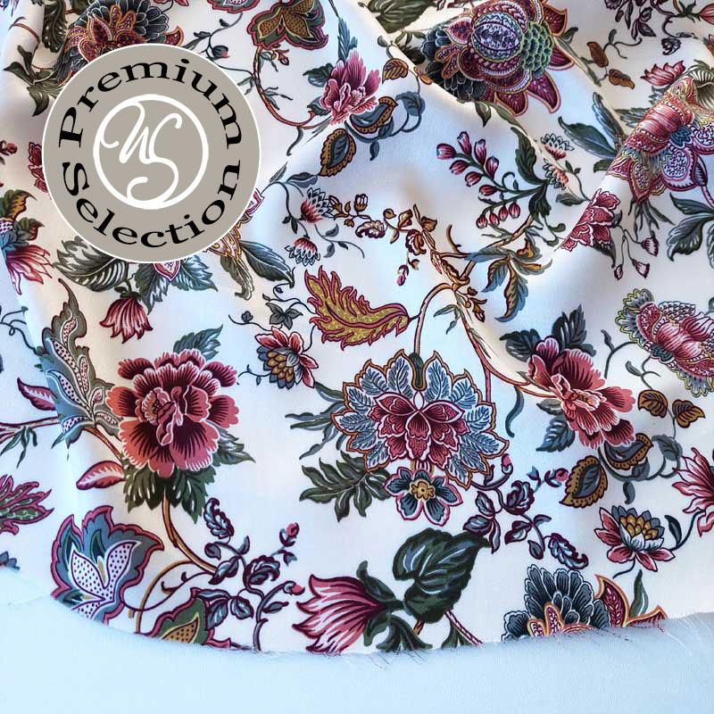 Viskose Satin Stoff Blusenstoff Blumen Meterware seidig fein - weinrot armygrün ecrue - Made in Italy