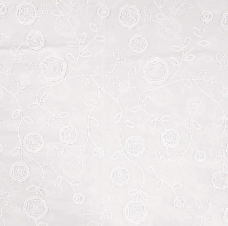 bestickter Baumwollstoff Blumen Stickerei Blätter Meterware, weiß